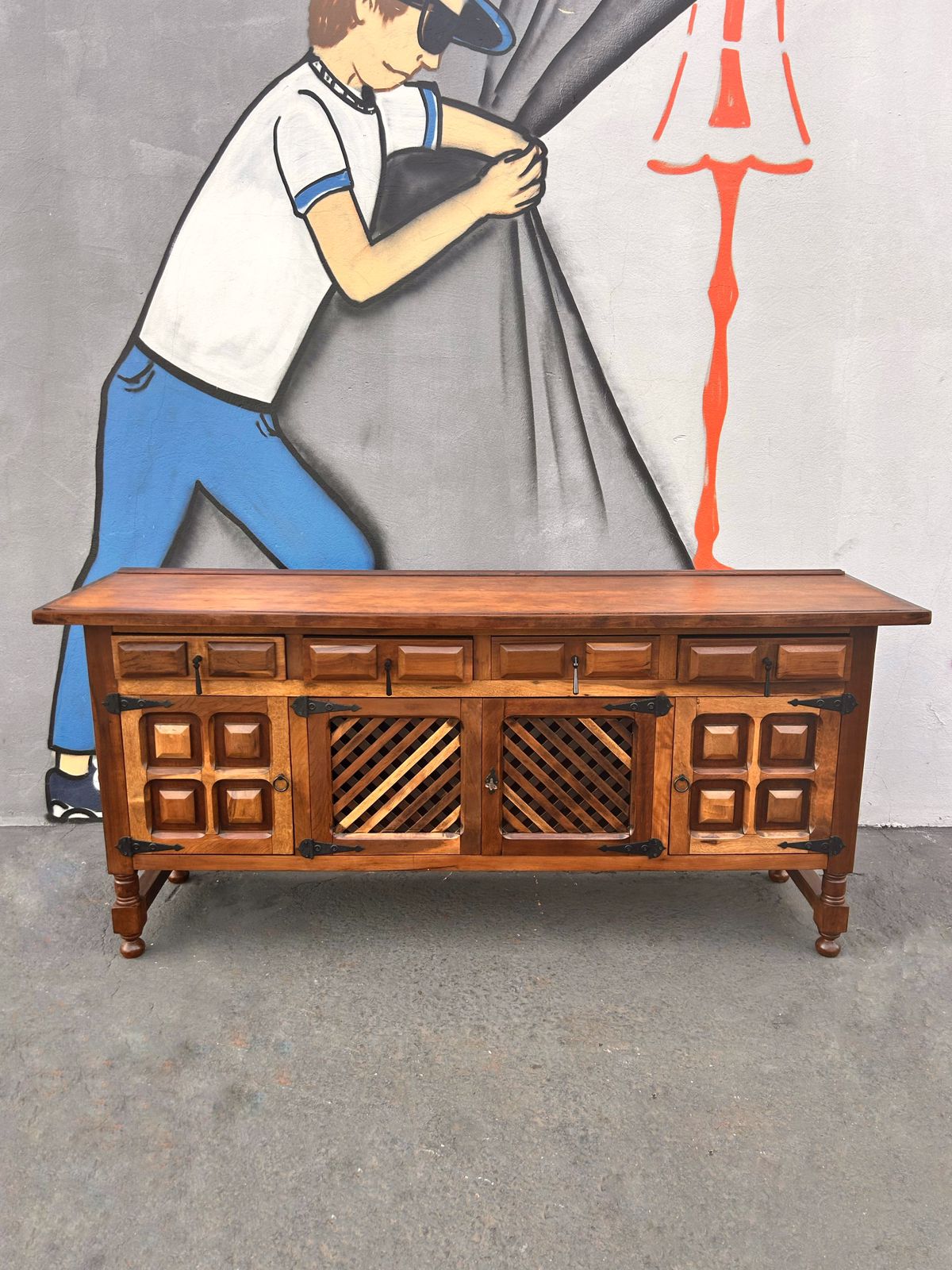 Este magnífico buffet rústico é uma verdadeira obra de arte, combinando a beleza da madeira maciça com a funcionalidade de um móvel atemporal. Com design inspirado nas antigas tradições, ele adiciona um toque de charme e sofisticação a qualquer ambiente. Perfeito para armazenar louças, livros ou objetos decorativos, este buffet é uma peça única e versátil.
